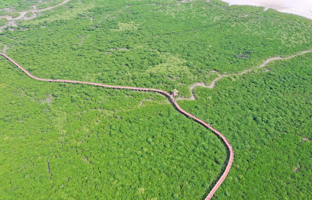 近年来,防城港市通过实施红树林生态系统恢复、退塘还海、滨海湿地水动力提升等举措,持续修复海岸线与滨海湿地。数据显示,目前防城港市红树林面积近2300公顷,较2020年增加200多公顷。北仑河口保护区列入国际重要湿地名录,防城港东湾、西湾列入自治区第一批重要湿地名录。