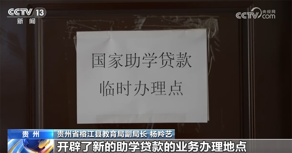 贵州省榕江县教育局副局长杨羚艺称:“在遭受了特大洪灾以后,我们也迅速地采取了行动,开展了受灾学生的情况摸排,开辟了新的助学贷款业务办理地点,确保我们受灾地区的学生能够办理业务。”