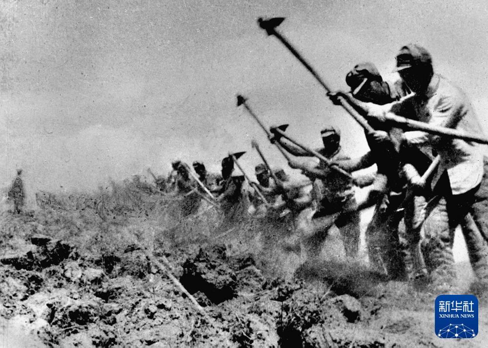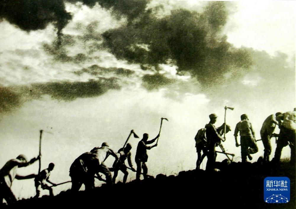 八路军战士在南泥湾开荒生产。新华社发
