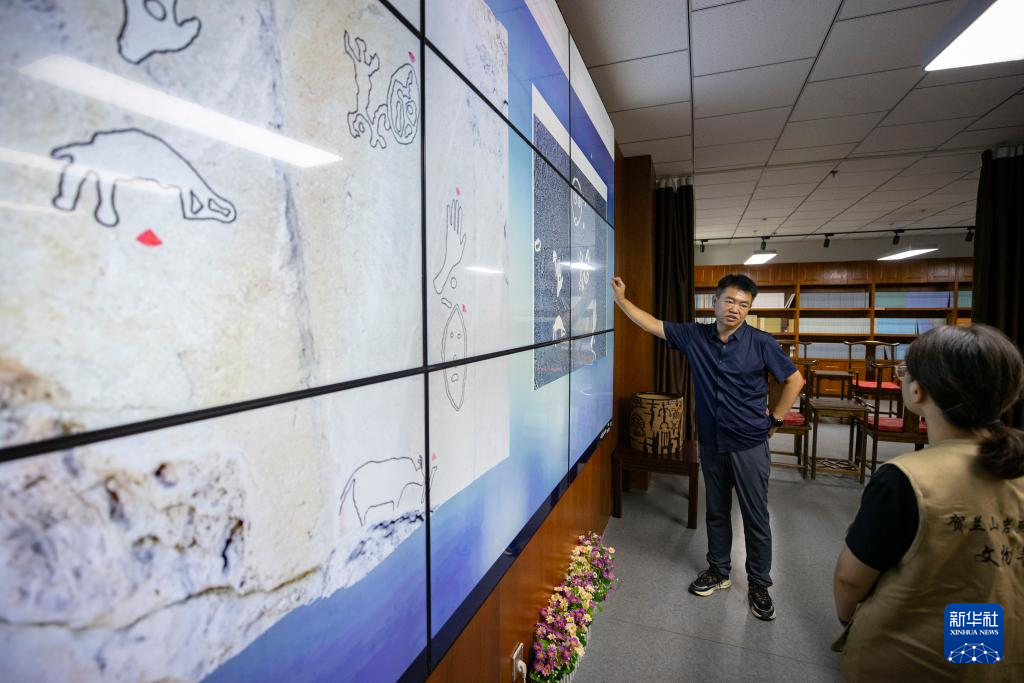 7月23日,工作人员在银川世界岩画馆研究室研究贺兰山岩画数字拓片。新华社记者 杨植森 摄