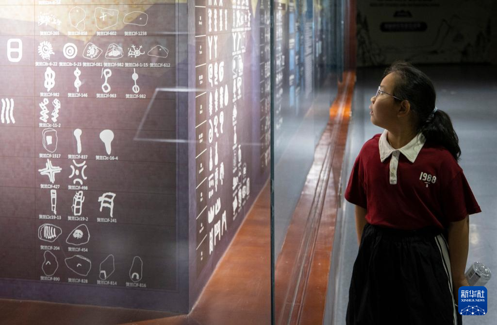 7月23日,游客在银川世界岩画馆参观。新华社记者 杨植森 摄