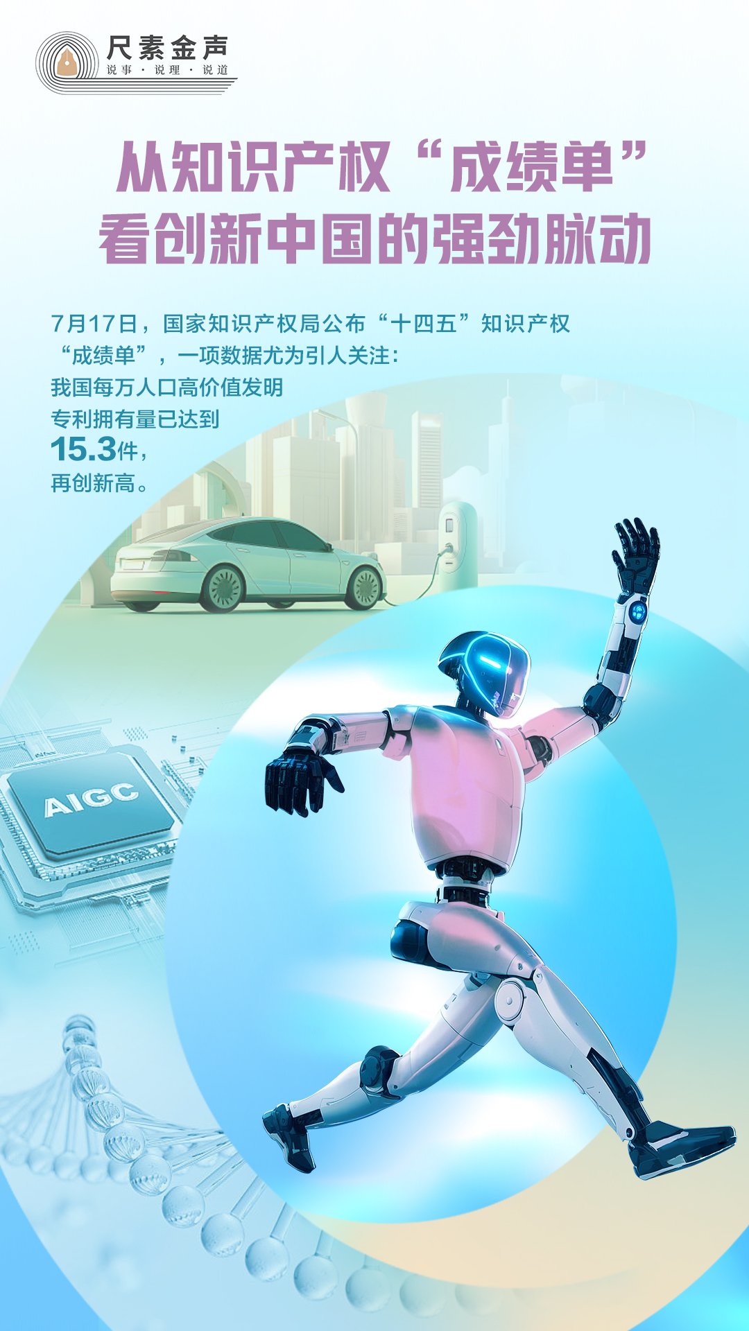 7月17日,国家知识产权局公布“十四五”知识产权“成绩单”,一项数据尤为引人关注:我国每万人口高价值发明专利拥有量已达到15.3件,再创新高。