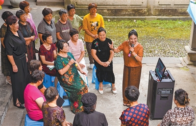 村民在一起表演越剧。