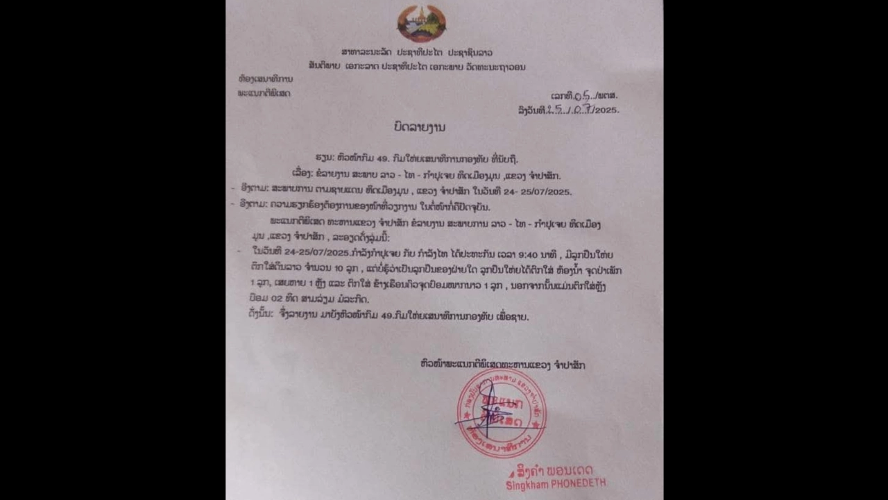 根据老挝占巴色军区司令部的报告,事件发生在7月24日至25日之间,柬埔寨武装人员非法越境进入老挝领土,老挝军方迅速展开行动并与其发生枪战。