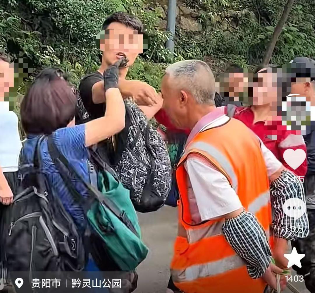7月25日晚间,有IP定位在贵州的网友发布了一则争吵视频,称有外地游客见黔灵山公园的环卫工驱赶猴子,便谩骂环卫工。相关视频显示,在一景区道路上,一男子不顾众人阻拦,指着一身着橙色背心的工作人员质问,“我们1600公里过来看猴,你打它?二级保护动物你不知道吗?”虽然视频里,工作人员曾小声回复“我吓它(猴子)”,但该男子仍表示,“你再打一下猴看看,你再打猴,我打你。”