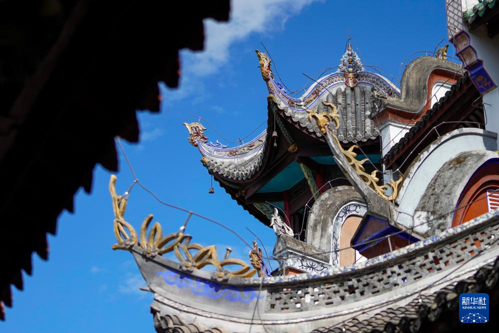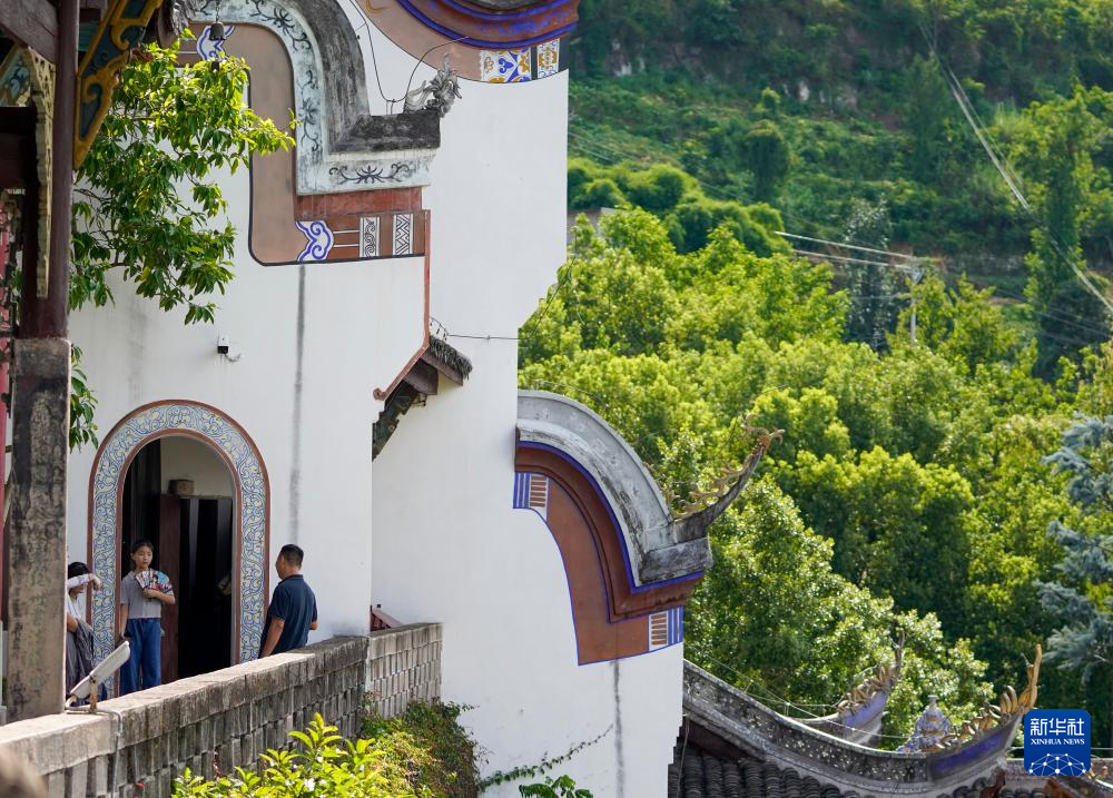 7月24日,游客在重庆云阳张飞庙内参观游览。 新华社记者 刘潺 摄