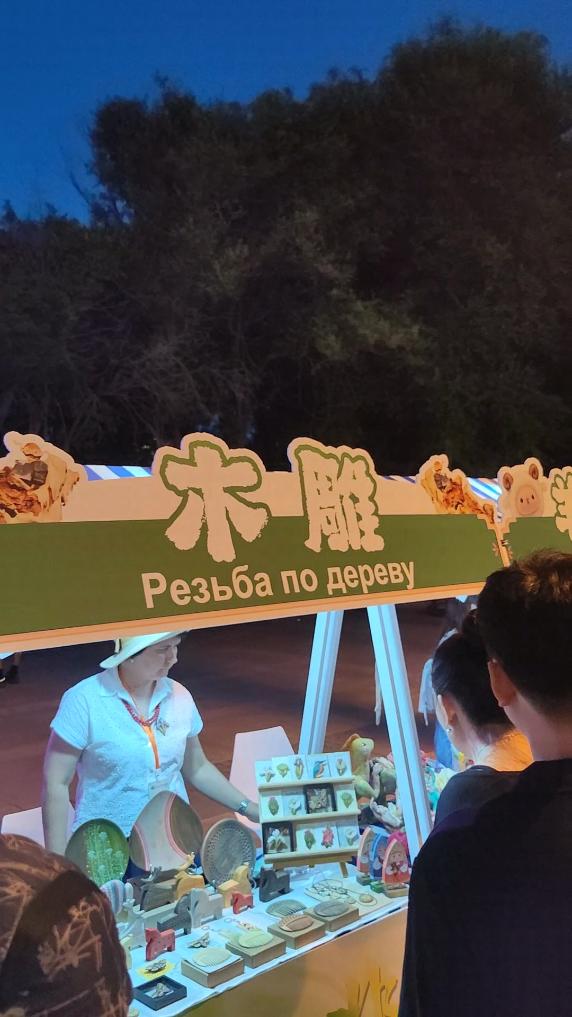 7月25日,在黑龙江公园商会广场,中俄非遗市集提前点燃了中俄文化大集的热情。开市首日,北安乌鱼绣传承人指尖翻飞,赫哲族鱼猎图纹等作品引得众人驻足观赏;几步之外,来自布拉戈维申斯克的木雕艺术家塔季扬娜·阿纳涅娃的富有俄罗斯风格的木雕饰品,引来一片快门声。
