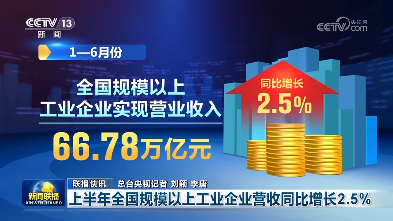 央视网消息:7月27日《新闻联播》报道,我国上半年节约物流总费用超1300亿元、全国规模以上工业企业营收同比增长2.5%、国家电网固定资产投资超2700亿元……多元领域蓬勃发展,奏响经济奋进强音。
