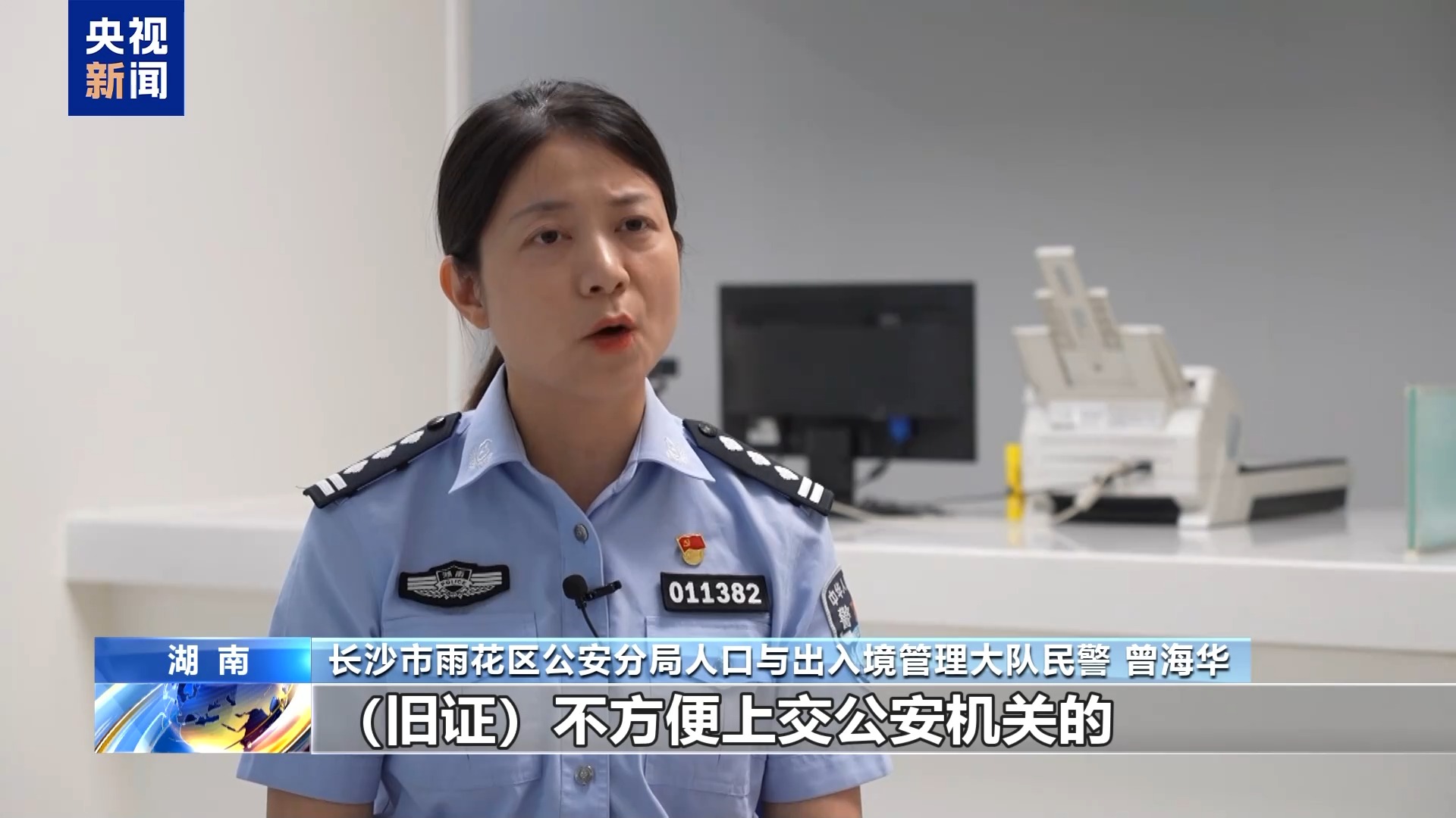 长沙市雨花区公安分局人口与出入境管理大队民警 曾海华:当您获取了新证之后,如果因为网办或者是其他原因(旧证)不方便上交公安机关的,请您自行剪角作废。