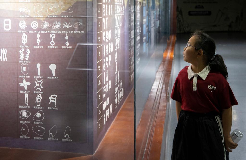 7月23日,游客在银川世界岩画馆参观。新华社记者 杨植森 摄