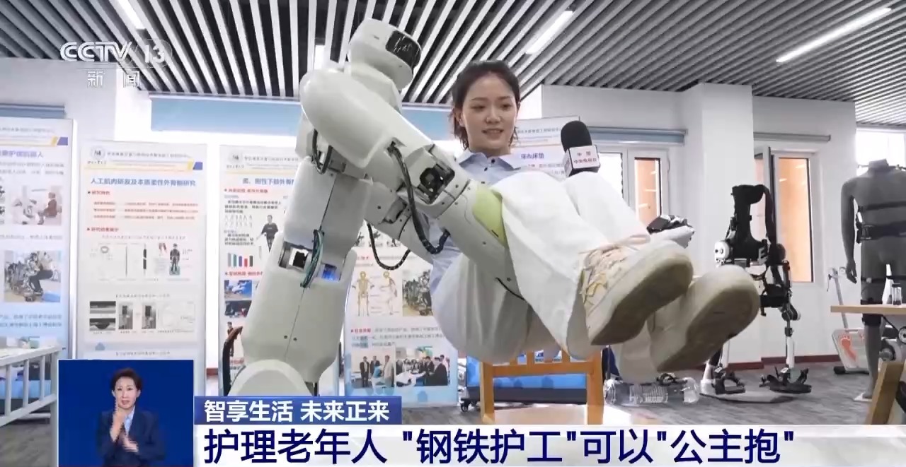 总台记者 王小珂:机器人在转移护理的过程中,不断调整角度,双臂对准了膝盖和背部这两个着力点。这种悬空的感觉是很神奇的,是一种类似于被人类拥抱着行走的震动感觉。
