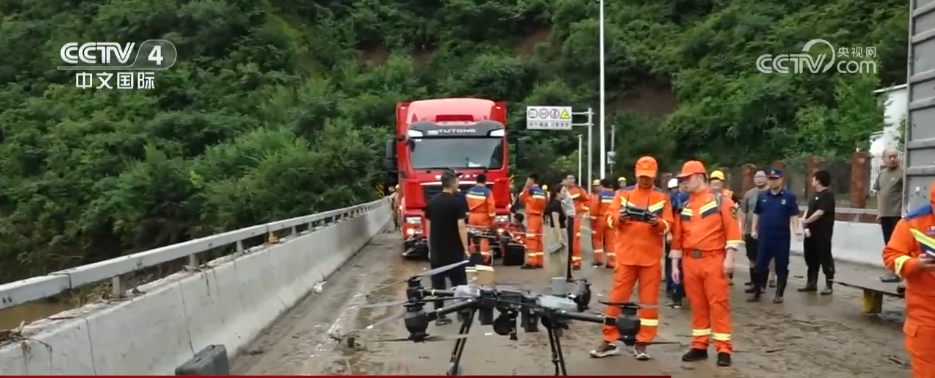 除已转移人员外,部分群众因山上道路损毁严重仍在等待转移。救援人员启用多架无人机,向琉璃庙镇21个点位陆续空投3000份物资。
