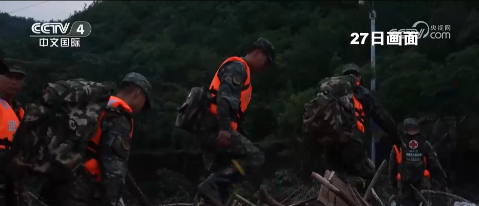 从27日晚开始,北京普降大雨,其中密云、平谷降下大暴雨,最大降雨量达到290.5毫米。在怀柔区琉璃庙镇西湾子村,强降雨导致群众被困,武警救援人员徒步穿越山林挺近村庄,一对一护送百余名受困群众分批向山下安全区域转移。密云、怀柔、延庆等地的电力、通信等设施正在全力抢修中。