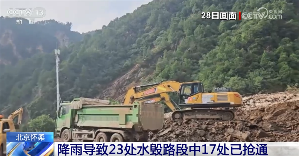 此次持续强降雨造成北京市怀柔区多个行政村受灾,多条道路因水毁中断。截至28日晚,公路部门统计北京怀柔区共有23处水毁路段,其中17处已经抢通,具备基本的抢险通行条件。来看总台中国之声记者28日发回的报道。