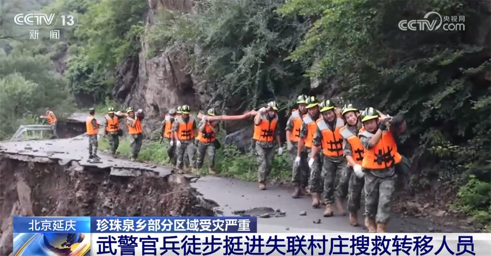 北京延庆:武警官兵徒步挺进失联村庄搜救转移人员