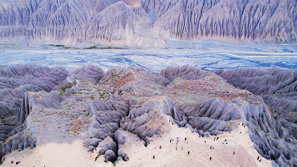 2025年7月28日,从空中俯瞰新疆乌苏大峡谷,两岸悬崖峭壁棱角清晰、气势磅礴。