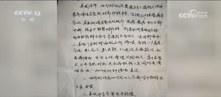 记者看到王振宇时,他又投入到了村里的救援工作中。这两封求救信见证了暴雨导致断路、断电、断通信的困境,也见证了西沟干部群众积极自救的坚韧。在这里,我们向奋战在救灾一线的工作人员致敬!