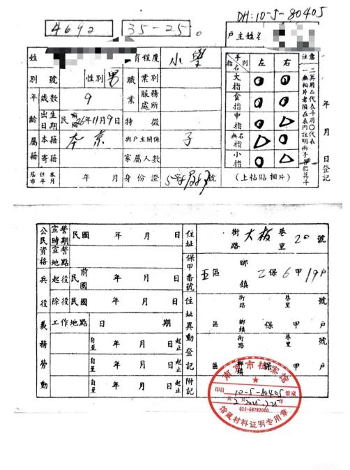 没过多久,档案馆给我打电话,可以去核对他的照片。看到照片的时候我很震惊,爷爷年轻的时候跟我的叔叔们长得很像。我记事时,爷爷已经是个“老头的样子”,但是那张户籍上,他很年轻,上面写着他在南京的哪里工作、做什么事情、住在哪里。