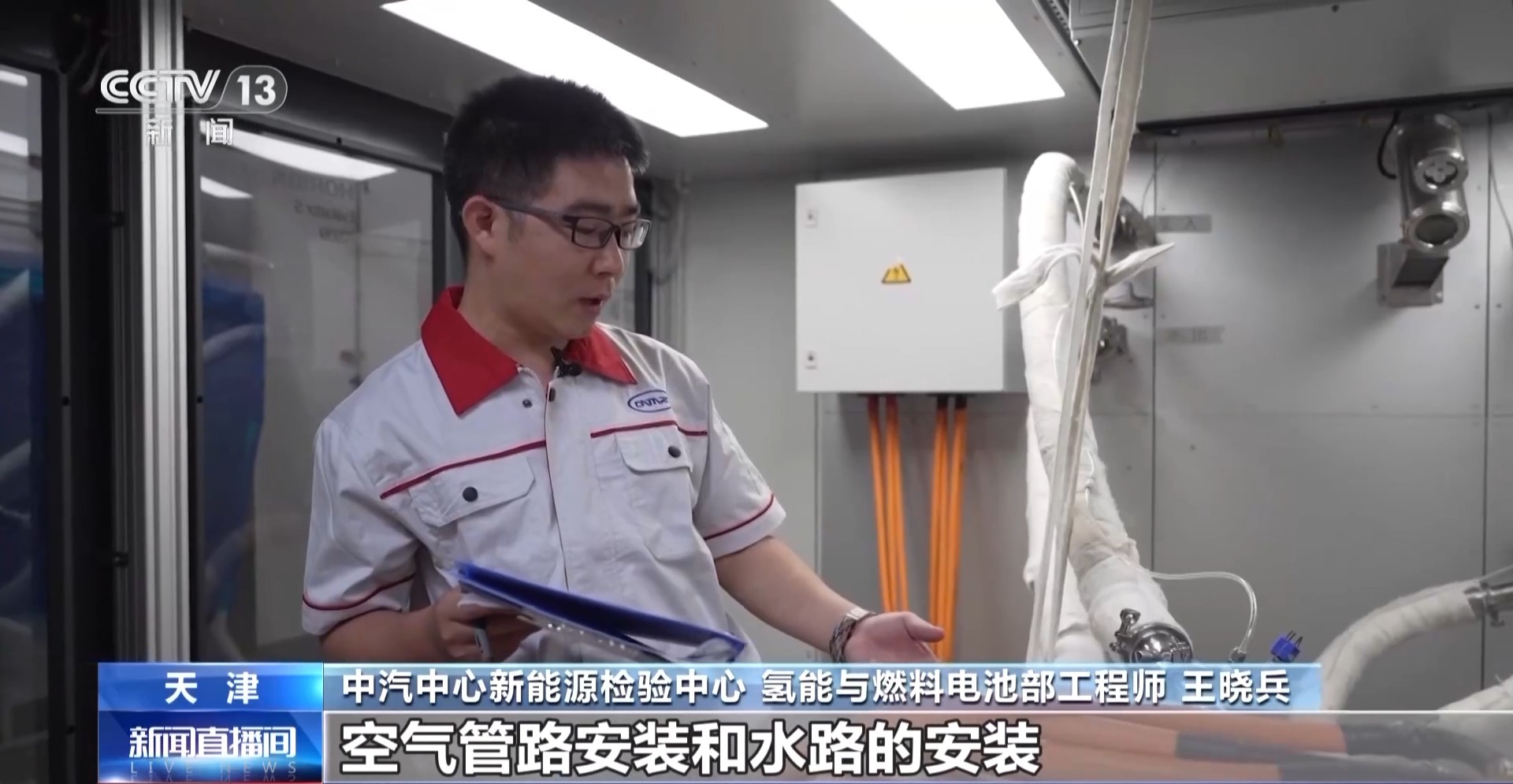 中汽中心新能源检验中心氢能与燃料电池部工程师 王晓兵:在测试之前我们基本都会对样品进行燃料电池的气密性的检测,保证氢气不会泄漏,包括整个氢气管路的安装、空气管路安装和水路的安装,以及电子负载的负载线安装,必须确保每一个连接步骤的安全性。