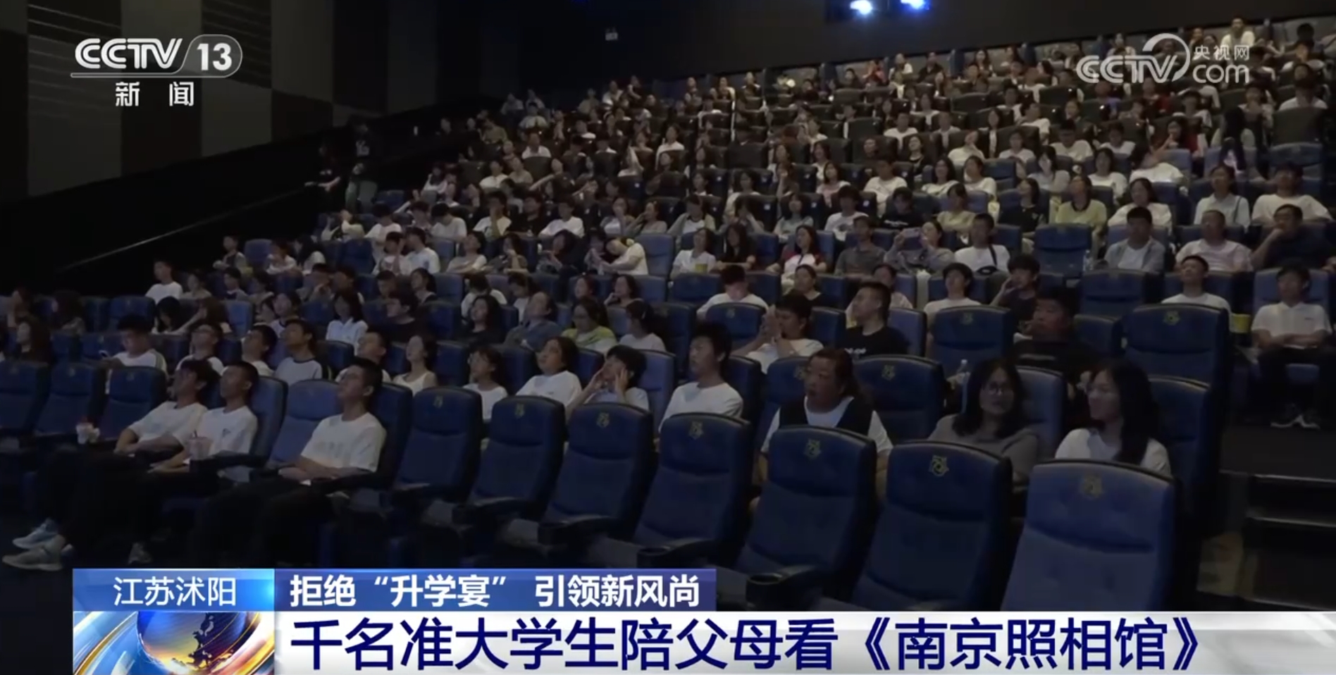 8月2日,第六季“拒绝‘升学宴’ 引领新风尚”主题活动之“陪父母看电影”在江苏宿迁沭阳县的多家影院开展。千名准大学生陪着父母观看《南京照相馆》,共同铭记历史,厚植家国情怀。