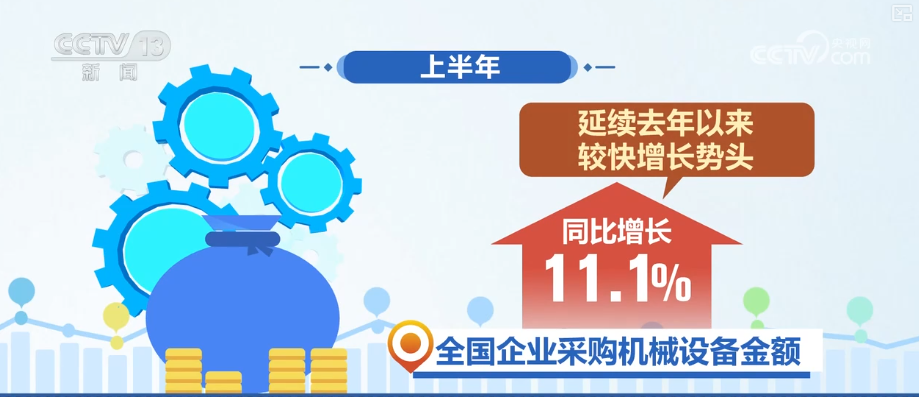 在大规模设备更新政策带动下,上半年,全国企业采购机械设备金额同比增长11.1%,延续2024年以来较快增长势头。