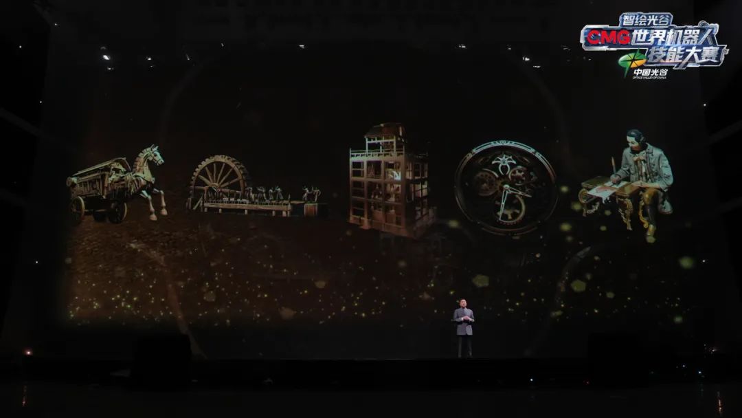 作为《智绘光谷·CMG世界机器人技能大赛》首发篇章,开幕式聚焦“人与机器共同进化”核心命题,紧扣“场景化应用”和“智能协同进化”发展趋势,围绕“从青铜到硅基”“从代码到具身”“从历史到未来”三大篇章,融合思想、艺术和技术,系统梳理从古代机关术到现代具身智能的技术演进脉络,构建起一部横贯千年、通向未来的科技叙事长卷,展现科技进步背后的文明纵深与人文关怀。