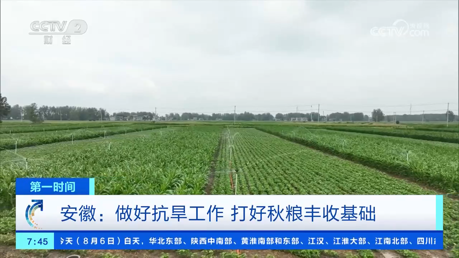 近段时间,安徽多地出现持续高温少雨天气,对此,当地通过精准调水和科学节水,全力抗旱保墒,夯实秋粮丰收基础。