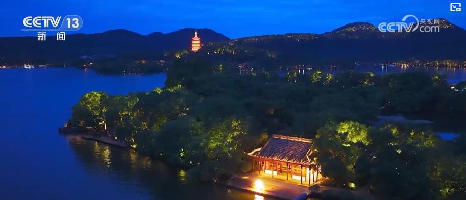 暑期的杭州西湖正迎来全国各地游客的“夜体验”热潮。泛舟赏景、探岛观演、逛市集淘文创,让游客们放慢脚步,在逛吃玩赏中感受景区处处“烟火气”。夜幕降临,随着游船缓缓离岸,来自四面八方的游客开启探访西湖“三岛”之一的小瀛洲的水上航程,岛上古风演艺精彩纷呈,诗词吟唱与丝竹歌舞向大家实景再现了宋韵生活场景。