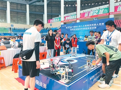 在广西贵港,第22届广西青少年人工智能及机器人竞赛暨跨区域面向东盟国家邀请赛现场,来自中国和东盟国家的1050支队伍,约6000名青少年、教练员在这里同台竞技,展示创新风采。借助赛事搭建平台,是近年来广西面向东盟国家进一步推进技术交流合作的生动缩影。