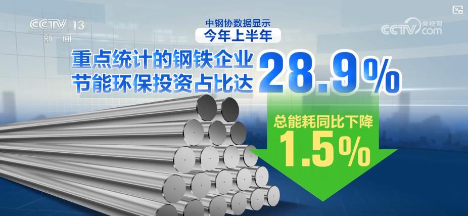 中钢协数据显示,今年上半年,重点统计的钢铁企业节能环保投资占比达28.9%,总能耗同比下降1.5%。截至6月底,全国已有193家钢铁企业完成或部分完成超低排放改造和评估监测,覆盖粗钢产能约7.73亿吨。其中,144家企业完成全流程超低排放改造,涉及产能近6亿吨。