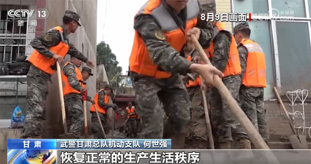 截至8月9日傍晚,武警甘肃总队共转移群众173人、搜救被困群众9人、救治受伤群众2人,转移受损车辆12台,累计清理淤泥3550余立方,搬运物资1400余公斤,搜索排查河道18公里,抢通道路2.35公里。目前,救灾工作正在紧张进行当中。
