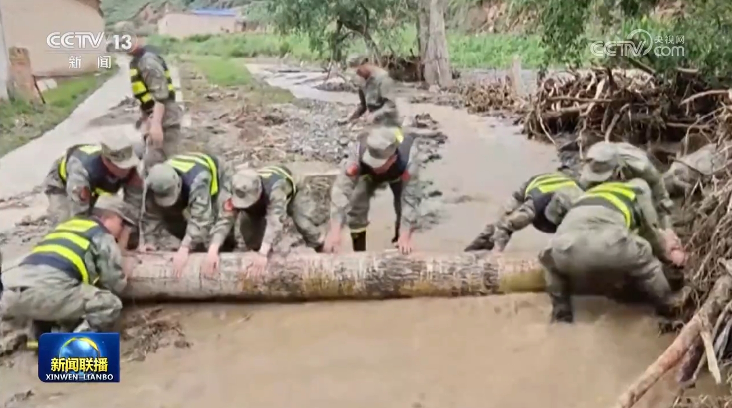 在旧庄沟村一社和二社,多数房屋已经被山洪冲毁,175名群众身处险境,兰州市七里河区民兵应急连党员突击队和赶来救援的部队官兵一起护送转移群众。一处河道桥梁被冲毁,党员突击队员紧急搭设简易桥梁,确保群众安全通过。