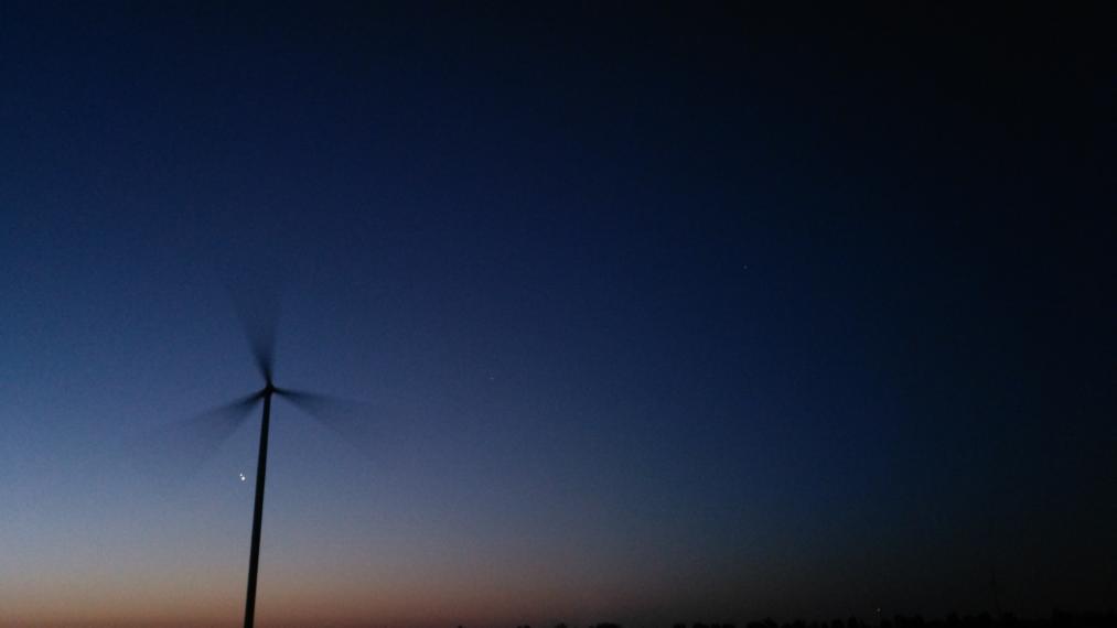 2022年5月1日,在天津宝坻区八门城镇郊外拍摄的金(右下)木(左上)极近。(马强 摄)