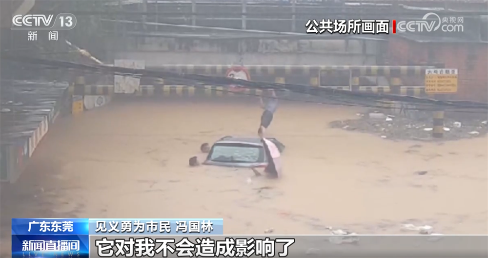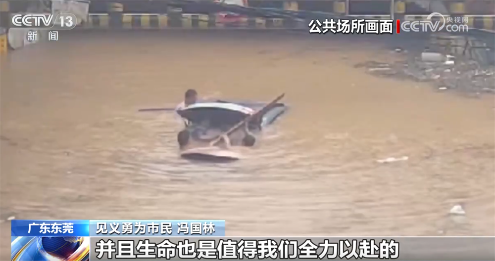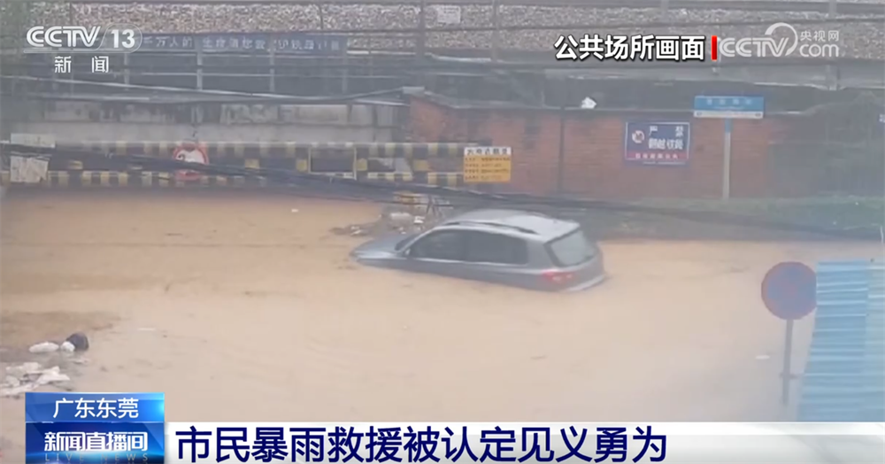 央视网消息:8月5日,持续的暴雨让广东东莞多地出现积水, 一辆小汽车陷入深水中,司机被困。危急时刻,7名素不相识的市民挺身而出,冒着暴雨,奋不顾身跳入积水中的涵洞,与民警协力上演了一场紧急救援。车内被困的司机最终获救。8月7日,东莞市见义勇为评定委员会、东莞市见义勇为基金会为7名下水施救人员颁发了见义勇为证书、奖金。