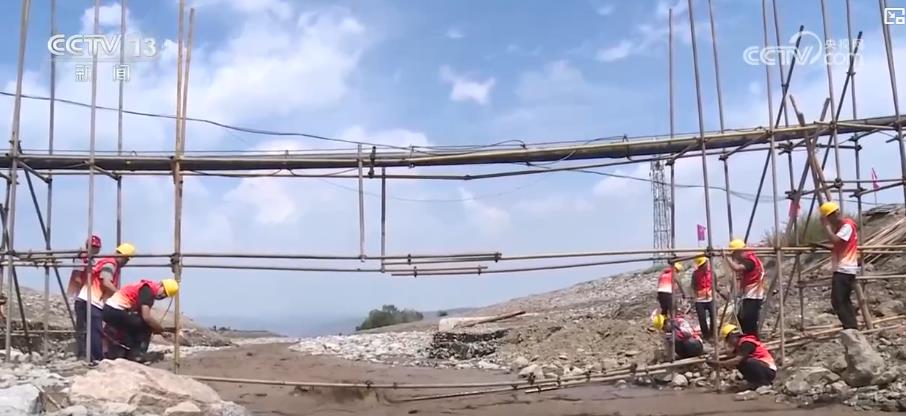 甘肃台记者 侯树环:我现在是在城关镇的周前村,山洪发生后,榆中县玻璃厂附近通往城关村、下汉村、周前村的供水管道被山洪冲毁,影响了附近2800人的正常用水。甘肃水投集团榆中供水公司首次通过钢缆软吊供水管道的办法,在空中架起了一条供水管道,也就是现在大家看到的这根黑色管道,终于在9日中午实现了应急管道临时通水,保障了附近村民正常用水。现在工作人员正在对管道进行加固。