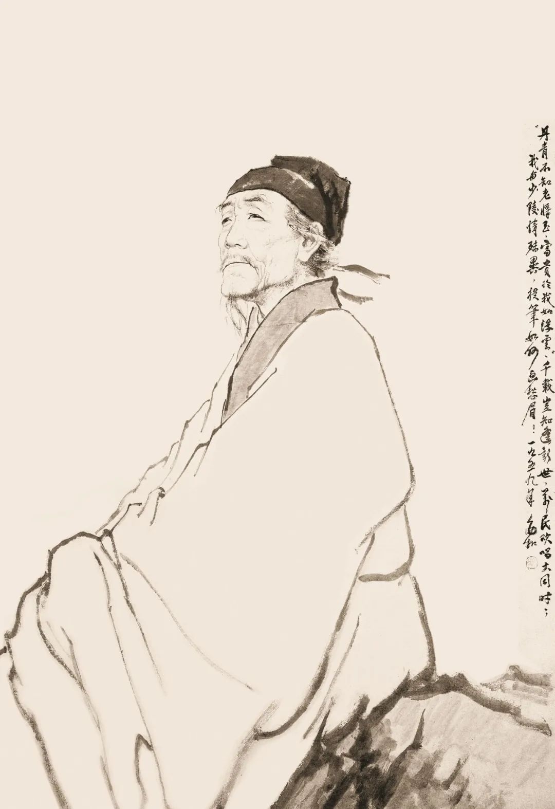 “往还古今”单元选取了蒋兆和大量以历史人物为题材创作的作品。其中包括众所周知的《杜甫》及其画稿、《太白沉思》《李清照像》《悠然见南山》《司马迁》等代表作。此类人物创作因缺乏明确的形象依据,画家只能以心为炬,借古人史传与作品去想象其风采,感受其心境,也因此更能体现蒋兆和笔墨意趣的抒发、情感心绪的表达。如在《杜甫》这件作品中,我们不仅能够看到蒋兆和在上世纪50年代为将白描、骨法用笔等中国传统笔墨技法融入人物画造型而作出的卓绝努力,同时也能通过人物塑造的精彩处体会到他“为民写真”的创作思路与杜甫忧国忧民的现实主义精神之间的情感呼应。
