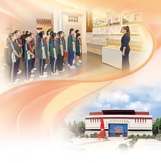 上图:孔繁森同志纪念馆讲解员(右)为学生们讲解。
