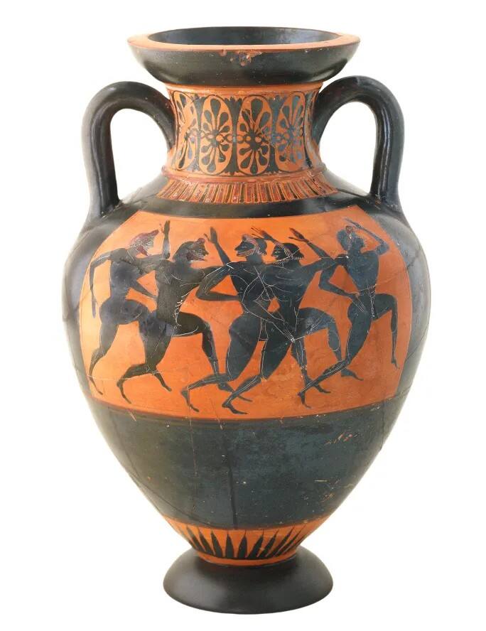 泛雅典娜节跑步比赛彩绘双耳陶罐。