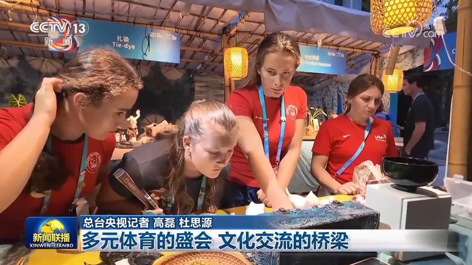 运动员村里,文化市集人头攒动。竹编、剪纸,学写毛笔字、绘画,体验太极……丰富多彩的文化交流项目,吸引各国运动员前来体验。夜色降临,结束比赛的运动员们跟随音乐跳舞,在特色市集边走边逛、挑选纪念礼物。夏夜里的运动员村,人们收获友谊,共话梦想。