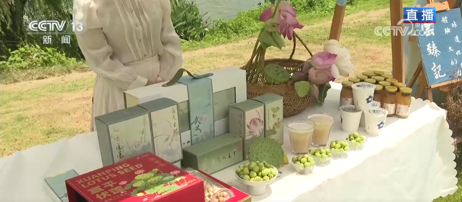 生态变好了,垃圾废弃物越来越少,对于村民来说除了住得舒心、生活得安心,同样很直观的改变,就是原来那些垃圾遍地的地方可以种东西了。种什么呢?种水稻、种玉米,还有种当地历史悠久的荷花等等。从2023年开始,村里发展莲子产业,光是莲子的衍生产品就有莲子银耳羹、莲子饮、水果莲子等等,从种植到深加工,再到电商平台、线上线下双重体验的新零售模式,带动了村内不少就业岗位,年销售额突破500多万元。