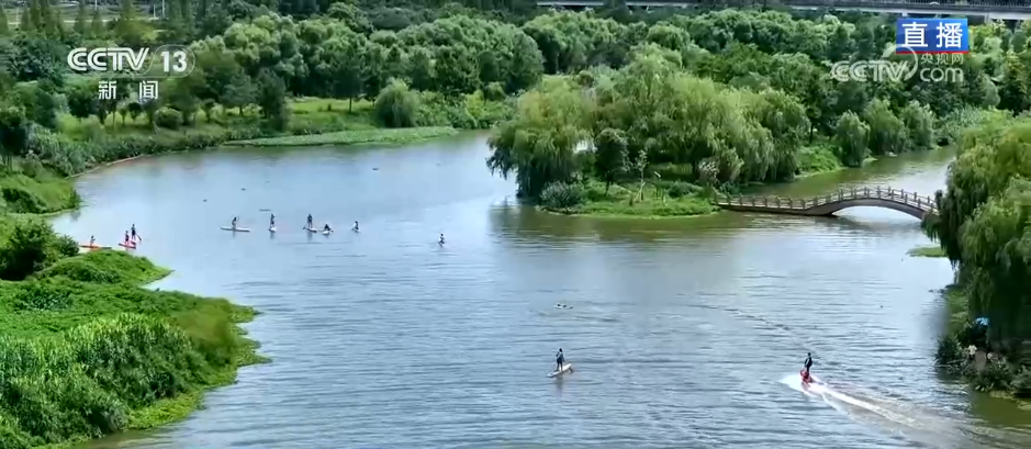 记者来到浙江金华武义县坛头村后发现,有不少的市民和来自其他省市慕名而来的游客在草坪上早早搭起帐篷,约上三五好友,享受暑期生活。在不远处,还有很多水上运动爱好者,有玩桨板的,还有玩电动冲浪板、电动卡丁船等。每到暑期或者节假日,这个湿地就成了不少市民游客避暑纳凉、放松心情的好去处。