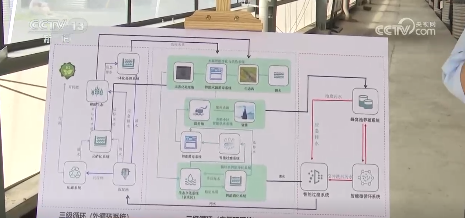 养鱼先养水,水质的要求对养鱼来说非常重要。在这么小的空间中,这些鱼的排泄物和喂鱼的饲料残余如何来处理?答案就在这套“生态水循环系统”中,它可以分为三级循环。第一级叫做“微循环”,每四个养殖桶共用中间智能微循环系统,过滤掉颗粒物;第二级“内循环”靠微生物分解氨氮等有害物质;第三级“外循环”用吸附材料再充分过滤。