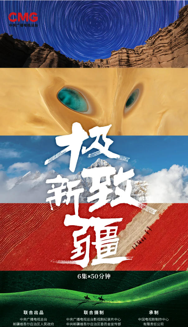 8月15日-20日,由中央广播电视总台影视剧纪录片中心、中共新疆维吾尔自治区委员会宣传部和新疆维吾尔自治区文化和旅游厅联合摄制,中国电视剧制作中心有限责任公司承制的纪录片《极致新疆》将在CCTV-9每晚20:00档重磅播出。