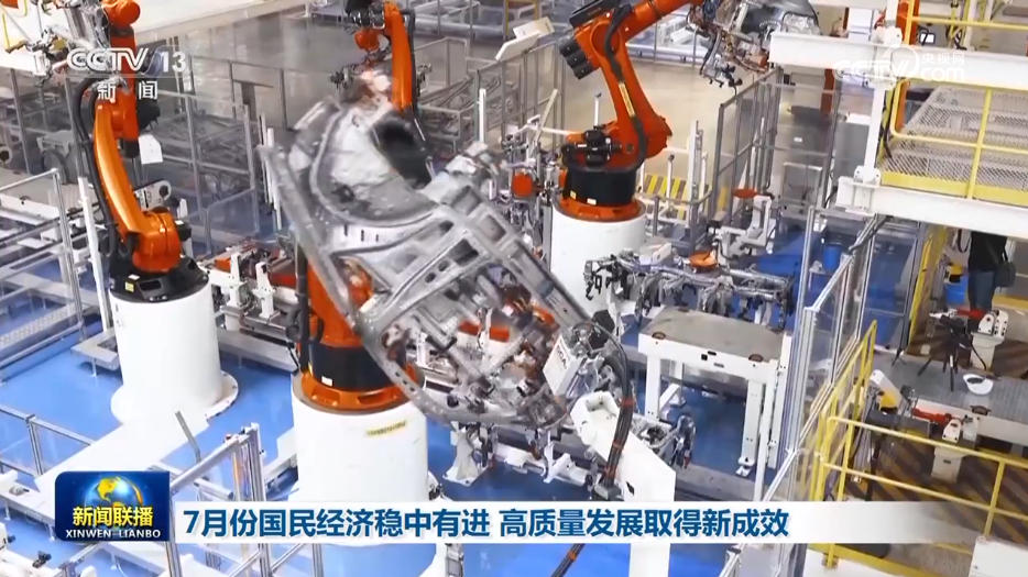 央视网消息(新闻联播):国务院新闻办公室8月15日举行新闻发布会。国家统计局发布的最新经济数据显示,7月份,国民经济保持稳中有进发展态势,高质量发展取得新成效。