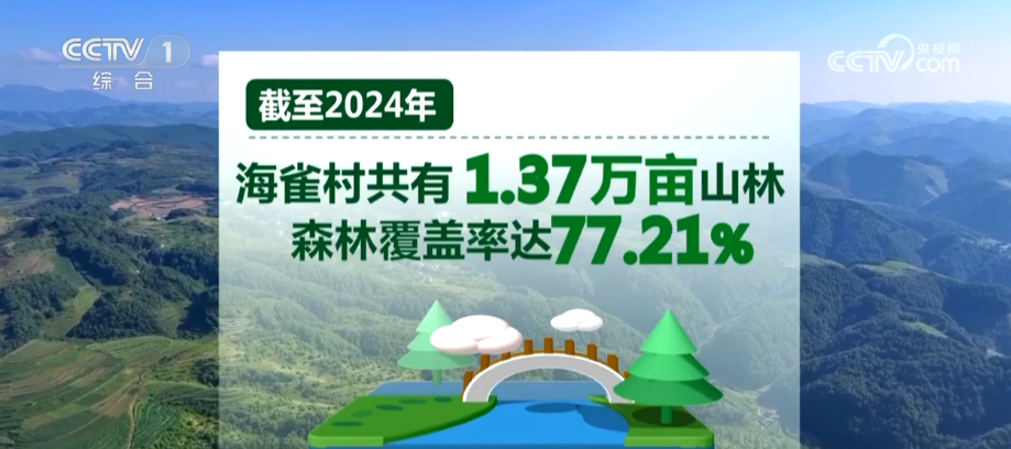 从荒山秃岭到万亩林海,从土地沙化到林下作物丰富,从曾经“苦甲天下”的贫困村到如今安居乐业的幸福村,几十年来,海雀村发生了翻天覆地的变化。截至2024年,海雀村共有1.37万亩山林,森林覆盖率达77.21%。