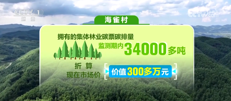 依托这万亩林海,海雀村的空气也能卖钱了。海雀村拥有的集体林业碳票碳排量在监测期内是34000多吨,折算现在的市场价,价值300多万元,全村229户群众户均增收1.3万余元。海雀村还先后被评为“全国造林绿化千佳村”“全国生态文化村”等一系列称号。