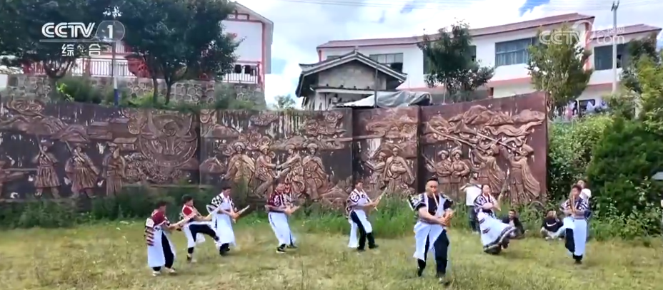 村民们在村文化广场上表演的是贵州省级非物质文化遗产赫章《苗族大迁徙舞》。它将苗族迁徙历史绣进服饰,编成歌谣,在当地可以说源远流长。