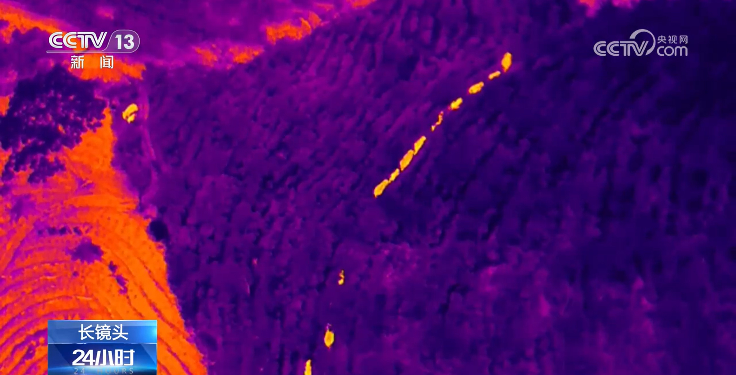 通过热成像无人机监测,监测员发现大象已经下山。