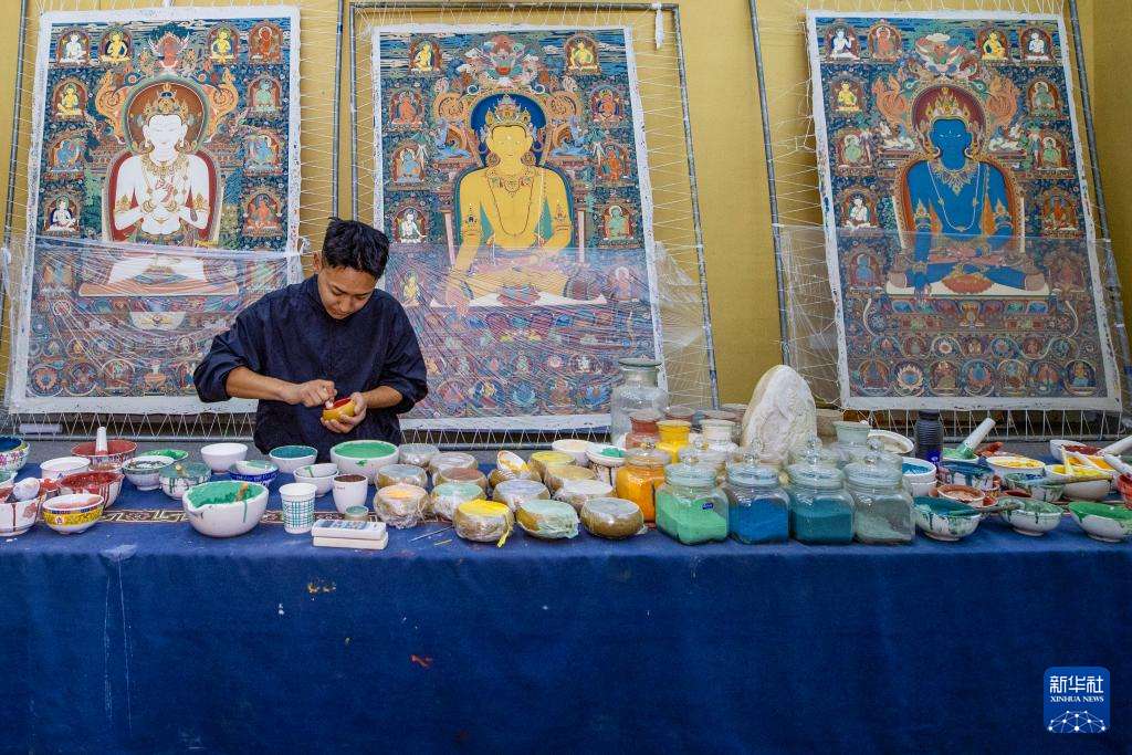 8月6日,一名画师在绘制唐卡。藏族唐卡入选国家级非物质文化遗产代表性项目名录。新华社记者 姜帆 摄
