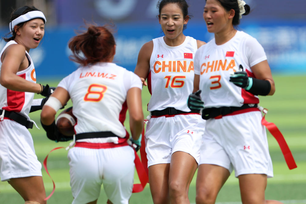成都世运会女子腰旗橄榄球比赛首日,中国队上演正式比赛首秀。这支组队集训仅3个多月的“神秘之师”,在首场迎战世界排名第四的奥地利队的比赛中,只以2分惜败。